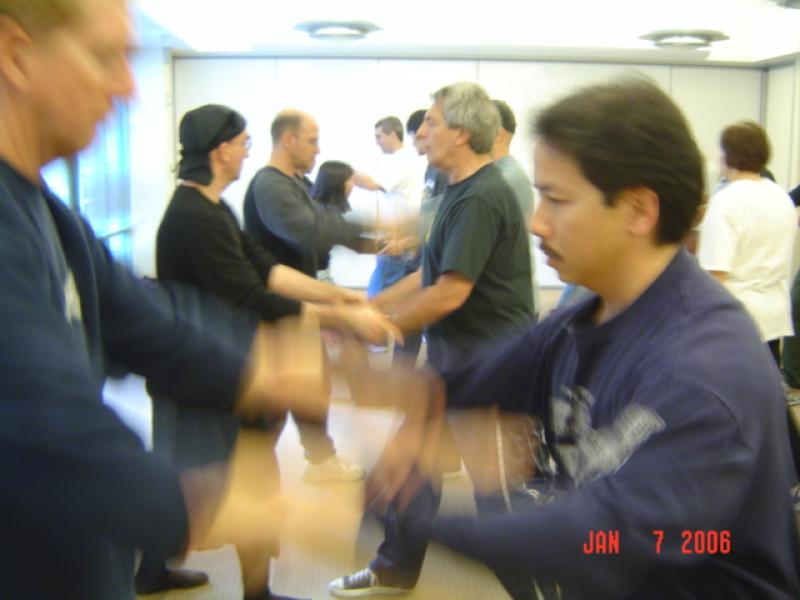 I-Liq Chuan is an internal martial art based on Zen (Chan) and Taiji principles. The name translates into mind-body fist or mental-physical boxing. I-Liq Chuan emphasizes the development of awareness as the basis for martial skill. The training process includes harmonizing yourself by directing mental attention to one's senses to gain understanding of body structure, muscular movement, and the link between the mind and body. The harmonizing with your opponent training involves partner exercises to develop circular spiral movements with sensitivity, sticking, and merging abilities (I-Liq Chuan spinning/sticky hands training is similar to taijiquan's push hands training). Sifu Sam Chin (and instructors from the I-Liq Chuan Association) comes out to the bay area (about twice a year) to teach weekend workshops and to check on the student's progress in I-Liq Chuan. For more information on Zhong Xin Dao/I-Liq Chuan, go to www.iliqchuan.com |